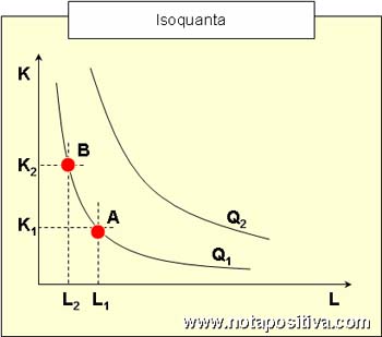 Uma Isoquanta (ou Curva de Igual Produto) é uma curva que num espaço de factores produtivos representa as várias combinações possíveis de factores que permitem obter a mesma quantidade de produção. No gráfico abaixo, todas as combinações de factores produtivos K e L sobre a curva Q1 permitem obter sempre a mesma quantidade de produto; o mesmo acontece na curva Q2. A curva Q1 é, portanto, uma isoquanta. As isoquantas são, desta forma, análogas às curvas de indiferença do consumidor (as quais apresentam combinações de bens que permitem a mesma utilidade):