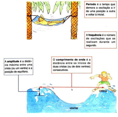 Período (T) . Tempo de uma vibração completa . A unidade do Sistema Internacional é o segundo (s) Amplitude (A) . Distância máxima entre um ventre (ou uma crista) e a posição de equilíbrio. A unidade do Sistema Internacional é o metro (m)