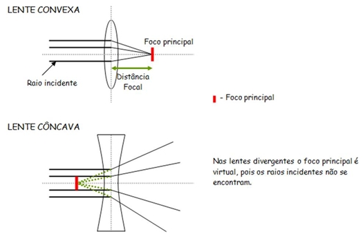 3. Lentes Meio óptico limitado por 2 superfícies curvas (côncavas ou convexas) ou por uma superfície curva e outra plana.