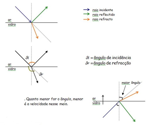 5. Refracção da luz A refracção da luz ocorre quando a luz, ao incidir na superfície de separação de dois meios transparentes, passa de um meio para outro, geralmente com mudança de direcção.