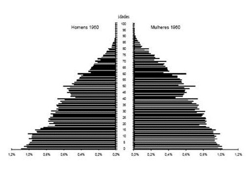 POPULAÇÃOCONCEITOS Demografia – ciência que estuda a população; Natalidade – número de nados-vivos que ocorrem numa dada região durante 1 ano; Mortalidade – número de óbitos que ocorrem numa dada região durante 1 ano; Crescimento Natural – é a diferença entre a natalidade (N) e a mortalidade (M). Taxa de Natalidade – número de nascimentos que ocorrem numa dada região durante 1 ano por 1000 habitantes; Taxa de Mortalidade – número de óbitos que ocorrem numa dada região durante 1 ano por 1000 habitantes; Taxa de Crescimento Natural – é a diferença entre a taxa de natalidade e a taxa de mortalidade. EVOLUÇÃO DA POPULAÇÃO PORTUGUESA NA 2.ª METADE DO SÉCULO XXNos últimos 50 anos, a população portuguesa aumentou, passando de cerca de 8 milhões para 10 milhões, aproximadamente. No entanto, esta evolução nem sempre foi positiva. Na década, registou-se um decréscimo da população. Este decréscimo teve como principal causa a elevada emigração para os países europeus mais desenvolvidos. Na década de 80, registou-se o maior aumento da população, devido ao retorno dos residentes nas ex-colónias, logo após o 25 de Abril de 1974. Relativamente à evolução das taxas de natalidade e de mortalidade, temos: . a taxa de natalidade tem vindo a diminuir, passando de 24 por mil em 1961 para 11 por mil em 2001. Tal situação deve-se aos seguintes factores: - emancipação da mulher; - divulgação do planeamento familiar onde está subjacente a divulgação dos métodos contraceptivos; - casamentos tardios; - os filhos são vistos como despesa; - o modo de vida urbano (tamanho das habitações, exigências sociais como férias, cinemas, restaurantes …) - aumento das famílias monoparentais; - aumento do número de celibatários. . manutenção da taxa de mortalidade até aos anos 90. A partir desta data, houve um ligeiro aumento que se deveu a: - aumento dos acidentes de viação; - aumento das doenças cardiovasculares, provocadas pelas alterações alimentares; - aumento de doenças como a SIDA e hepatites (principalmente a hepatite C); - o envelhecimento da população. Saldo Migratório O Saldo Migratório em Portugal foi negativo até 1963, atingindo o máximo, da década de 60, em 1969 com cerca de 200 000 emigrantes. O valor máximo do século foi atingido em 1974, com valores de 350 000. Esta situação resultou do regresso dos residentes das ex-colónias, logo após o 25 de Abril de 1974. A partir desta data, houve uma maior normalização dos valores e, a partir de 1989/90, registou-se um novo aumento. Esta deve-se à entrada dos cidadãos de Leste e dos países lusófonos como Cabo Verde, Angola e Brasil. PIRÂMIDES ETÁRIAS1. Pirâmides Jovens (com topo muito estreito e base muito larga) Típica dos países não desenvolvidos