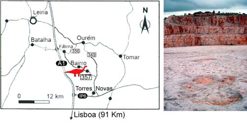 Localização da Pedreira do Galinha: Cabo Espichel: O Cabo Espichel é um local que revela inúmeras marcas dos saurópodes do Jurássico superior: apresenta várias impressões de pés e de mãos muito bem conservadas. Nas arribas entre o Cabo Espichel e a baía dos Lagosteiros existem várias camadas do Jurássico superior com trilhos de dinossauro. A jazida da Pedra da Mua, datada do Jurássico Superior é formada por trilhos de dinossauros saurópodes e a jazida dos Lagosteiros, datada do Cretácico Inferior, na parte superior da arriba que limita a pequena baía dos Lagosteiros, contém um longo trilho de um dinossauro bípede.
