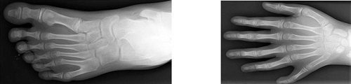 Polidactilia central, desde do pulso, 3. INCIDÊNCIA Esta mutação verifica-se 1 vezes a cada 5000 nados vivos. Segundo um estudo realizado por Finley combinando dados relativos a Jefferson Coutry, Alabama, Estados Unidos da América e relativos a Uppsala, Suécia, a anomalia (em todos os seus tipos) está presente em 2,3 homens caucasianos por cada 1000, em 0,6 mulheres caucasianas por cada 1000, em 13,5 homens negros por cada mil, e em 11,1 mulheres negras por cada mil. Verificando-se assim que a Polidactilia é mais frequente no sexo masculino e na raça negra. 4. CAUSAS Esta alteração física deve-se, na maior parte dos casos, a uma mutação génica ao nível do cromossoma 7, mais especificamente nos genes que sintetizam as proteínas: Sonic hedgehog homolog (SHH) e Zinc Finger GLI3 (GLI3). Estas biomoléculas desempenham um papel fundamental na organogénese dos vertebrados especialmente a nível dos dedos dos membros, na medida que ampliam e inibem os efeitos de outras proteínas envolvidas também nesse processo. Quando os genes que as produzem sofrem mutações a sua síntese fica comprometida e consequentemente o crescimento de dedos não é inibido, crescendo assim em número superior a cinco. Muita das vezes esta anomalia está associada a diversas síndromes, como são exemplo: a síndrome de Ellis van Creveld e a síndrome de Pallister-Hall. Sendo a polidactilia causada por um gene dominante a probabilidade de ser transmitida a um descendente é no mínimo de 25% (quando apenas um dos progenitores tem um dos cromossomas “saudável” e o outro com o gene mutante) e chega a ser de 100% (sendo apenas necessário que um dos progenitores tenha em ambos os cromossomas o gene mutado).