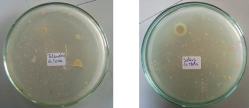 Fig. 1 – Caixa de Petri nº 1 Fig. 2 – Caixa de Petri nº 2 (inoculação com telémovel) (inoculação com saliva)