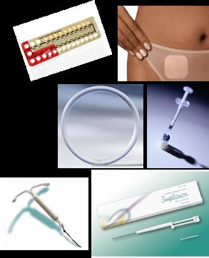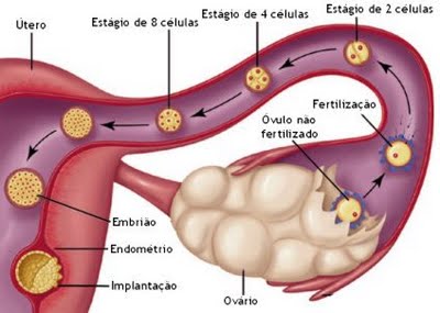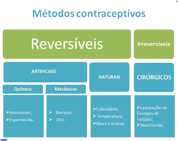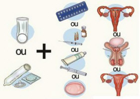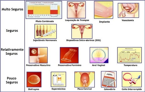 Introdução Por contraceção entende-se a prevenção da gravidez auxiliada por métodos contracetivos. Os métodos contracetivos, aliados a uma política de planeamento familiar, são essenciais para a diminuição do crescimento da população humana.  Fig.1: Relação entre a quantidade de indivíduos existente e a quantidade de indivíduos possível sem planeamento familiar nem métodos contracetivos. Atualmente existem dois tipos de métodos contracetivos: os métodos naturais e os métodos não naturais/ artificiais (mecânicos ou químicos). À exceção da abstinência sexual, nenhum método é 100% eficaz, porém esta eficácia poderá ser melhorada com a combinação de dois ou mais métodos simultaneamente.  Fig. 2: Combinações de métodos contracetivos. Métodos Contracetivos Os métodos contracetivos são utilizados com a finalidade de impedir a ocorrência de gravidez e podem intervir de três formas distintas: . impedir a libertação dos gâmetas a partir das gónadas;  Fig.3: Libertação de gâmetas: ovulação.  Fig. 4: Fecundação. . impedir o encontro dos gâmetas (fecundação);  Fig.5: “Implantação” refere-se a nidação. Métodos Contracetivos Naturais Os métodos contracetivos naturais baseiam-se na determinação do momento provável da ovulação e na abstinência de relações sexuais nos dias que rodeiam esse acontecimento. Desta forma, impedem o encontro entre os gâmetas, oócito e espermatozoide, ou seja, impedem a fecundação. Deste tipo de contraceção fazem parte o Método do Calendário/Ritmo, a Avaliação diária da temperatura, o Método de Billings ou do muco cervical, o Método Sinto-térmico e o Coito Interrompido. Deve ser tido em consideração o facto de que, estes métodos, não previnem as DST e não têm qualquer tipo de efeito secundário por não consistirem na ingestão ou absorção de substâncias químicas. Método do Calendário O Método do Calendário, também conhecido como Método do Ritmo consiste no registo da duração do ciclo menstrual durante cerca de um ano para ser conhecida a média (cerca de 28 dias) de dias do ciclo referido e com estes dados determinar o dia da ovulação e abstinência de relações sexuais no período compreendido entre quatro dias antes e três dias depois da ovulação.  Fig.6: Método do Calendário./Avaliação do ciclo menstrual. Este método é falível uma vez que em situações de stresse e/ou ansiedade podem ocorrer alterações no normal funcionamento da regulação do sistema reprodutor feminino, alterando a suposta data de ovulação. Avaliação diária da temperatura Este método consiste apenas na medição diária da temperatura basal em repouso e na determinação do momento da ovulação pelo aumento da temperatura (cerca de 0,5ºC) que a precede. Este aumento de temperatura é resultado do aumento dos níveis de progesterona, que tem efeito termogénico. O método permite, através da medição diária da temperatura basal, a determinação da fase infértil apos a ovulação.  Fig.7: Comparação entre a variação da temperatura e o ciclo uterino e relação com a ovulação. A temperatura basal pode ser afetada caso não tenham existido por parte da mulher pelo menos 3 horas de sono consecutivo depois de uma relação sexual, caso tenha tido episódios de febre ou se ingeriu álcool na noite anterior. Método de Billings ou do muco cervical Este método consiste na observação das características do muco cervical (secreção produzida no colo do útero através das criptas cervicais), que por ação hormonal sofre alterações ao longo do ciclo menstrual, e abstinência de relações sexuais quando este se apresenta elástico, de consistência gelatinosa e aparência viscosa, sendo que durante o período não fértil é mais fluido e transparente.  Fig. 8: Alterações visíveis no muco cervical ao longo do ciclo menstrual. Método Sinto-térmico Este método resulta da observação conjunta de todos os métodos anteriormente apresentados (Método do Calendário, Avaliação diária da temperatura e Método de Billings) que permite com maior fiabilidade a determinação do período fértil da mulher. O Método Sinto-térmico poderá estar também relacionado com os “sintomas” característicos do início da menstruação como a dor abdominal, variações de humor e seios e barriga inchados.  Fig.9: Exemplo da avaliação feita no Método Sinto-Térmico. Caso a mulher não esteja perfeitamente à vontade com os três métodos precedentes não deverá utilizar este, uma vez que o conhecimento dos anteriores é crucial para a maior fiabilidade deste. Tal como os métodos acima descritos, este, como união desses, também pode sofrer pelas alterações da regulação hormonal da mulher, diminuindo a sua eficácia em resultado de ingestão de álcool, perturbações nas horas de sono, situações de ansiedade e stresse, entre outras. Coito Interrompido O coito interrompido consiste na remoção do pénis do interior da vagina, durante a relação sexual, antes da ejaculação impedindo assim a deposição do esperma no interior da vagina. Este método encontra-se longe de ser 100% eficaz uma vez que os espermatozoides não são apenas libertados aquando a ejaculação, mas podem ser libertados também juntamente com o fluido originário das Glândulas de Cowper, favorecendo assim a ocorrência de fecundação. Por outro lado, este método está condicionado pela capacidade de autocontrolo por parte do homem que pode não conseguir retirar o pénis do interior da vagina antes da ejaculação. Métodos Contracetivos Artificiais Os métodos contracetivos artificiais são mais eficazes do que os anticoncecionais naturais uma que não são baseados na regularidade (falível) do ciclo menstrual feminino nem dependem da capacidade de auto-controlo do homem. Estes podem ser Métodos Hormonais, Métodos de Barreira, Métodos Cirúrgicos ou Definitivos, Dispositivo Intra-ute