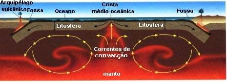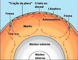 Esquema de secção do globo terrestre, mostrando, noutra perspectiva o mecanismo do movimento das placas ("Tração da placa") por efeito de correntes de convecção térmica. ConclusãoEste trabalho permitiu que eu aprofundasse os meus conhecimentos a nível da Terra como planeta vivo, pois assim percebi a origem de tudo o que me rodeia e percebi ainda que nem tudo está nas mãos do homem, é a própria Natureza que dita as regras. Outros Trabalhos Relacionados