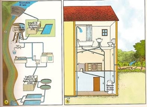Desenvolvimento sustentável da água O desafio que o desenvolvimento sustentável nos lança, para o caso da água é: preservarmo-la de maneira a que as gerações futuras tenham as mesmas quantidades, visto apenas podermos consumir 0,003% da água existente. Ora, para fazermos uma boa gestão dos recursos hídricos precisamos de os reciclar (usando as estações de tratamento de águas) e de os reutilizar (depósitos de água cinzenta). Outra das maneiras de o conseguir é, por exemplo, ter uma rede pública de esgotos eficiente, onde as águas residuais (resultantes da actividade humana) são usadas para outros fins, como: . Na Agricultura: Rega de culturas e viveiros . Nas Zonas Verdes: Rega de parques, campos de golfe, margens das estradas, recintos de áreas presidências . Na Indústria: Arrefecimento e caldeiras . Nas Zonas urbanas: Combate a incêndios, ar condicionado, lavagem de pavimentos. Melhoramentos no sector agrícola e doméstico Para além do tratamento de águas residuais, é importante intervir noutros aspectos de, pelo menos, dois sectores. O sector agrícola e o sector doméstico. No sector agrícola, os métodos tradicionais de irrigação usados são muito dispendiosos pois ela ou é feita por canais que percorrem grandes distâncias ou a água é atirada para grandes distâncias perdendo-se muita por evaporação. Uma das inovações na irrigação agrícola é a microirrigação que consiste em usar finas mangueiras com pequenos furos que levam a água próximo das raízes, poupando assim até 60% de água! Sempre que possível deve regar-se ao anoitecer, para não se perder tanta água por evaporação! A utilização de águas residuais para fins agrícolas é também um dos métodos para poupar água, mas apenas se as águas estiverem devidamente tratadas pois caso contrário contamina os solos e a água não se podendo remediar. Tal descuido prejudica também a saúde pública. No sector doméstico, todos nós podemos intervir para economizar água. Para fazermos uma gestão sustentável da água em casa podemos sempre reutilizá-la. Para isso, alguns edifícios têm o depósito de água cinzenta que acumula água proveniente dos lavatórios e reutiliza essa água na lavagem de carros e descargas de autoclismo. Outra das maneiras de reduzir o consumo de água passa também pela adopção de medidas como: Preferir: . Autoclismos que em cada descarga não utilizem mais de seis litros; . Chuveiros e torneiras com redutores de caudal; . Máquinas de lavar roupa e loiça que utilizem menos água; . Sistemas que purifiquem e reutilizem a água; . Economizar papel e outros produtos que necessitam de muita água para o seu fabrico; . Tomar duches rápidos; . Lavar menos vezes o automóvel e preferir lavagem manual. Evitar: . Deixar torneiras a pingar pois gastam muitos litros de água) . Tomar banhos de imersão; . Ligar a máquina de lavar roupa ou loiça sem que esteja convenientemente cheia; . Deixar correr a água enquanto nos ensaboamos, lavamos as mãos, alimentos, loiça, etc. O que consome a nossa escola?