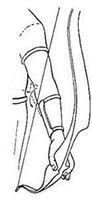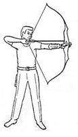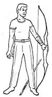 3º Braço que segura o arco: Esticado, com o cotovelo para fora. Mão no alinhamento do antebraço.