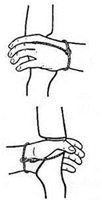 4º Dedos no gatilho: Puxar a corda usando apenas 3 dedos, o indicador, o médio e o anular encaixe da corda nos dedos.