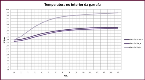 Objetivos Este trabalho tem como objetivo comparar o poder de absorção por radiação de três garrafas de superfícies distintas, verificar o aumento da temperatura no interior de cada uma até atingir a sua temperatura constante, permitindo assim saber qual a que melhor absorve e emite a radiação. Introdução teórica A radiação incidente num corpo pode ser absorvida e emitida, dependendo da natureza da superfície do mesmo. A parte que é absorvida aumenta a energia interna desse corpo e traduz-se em temperatura. A radiação é absorvida, o que faz com que aumente o valor da energia interna do mesmo. Quando se faz incidir uma certa radiação sobre o corpo, este aquece até atingir uma temperatura estável a que se chama de equilíbrio térmico que ocorre quando a absorção e emissão de radiação no corpo são iguais. Todos os corpos estão continuamente a emitir e a receber energia das vizinhanças. Será de esperar que um corpo de uma cor negra tenha um maior poder de absorção e de emissão do que um corpo de uma cor mais clara. Material . 1 garrafa branca; . 1 garrafa preta; . 1 garrafa baça; . Termopar; . 2 nozes; . Lâmpada; . Cronómetro; . 2 suportes . universais; Procedimento experimental . Colocámos uma das garrafas num suporte universal. . Introduzimos o termopar na garrafa, devidamente fechada com uma rolha de cortiça, e medimos a temperatura inicial do ar nela contido; . Colocámos a lâmpada num outro suporte universal e fizemo-la incidir numa das garrafas; . Apontámos, de minuto a minuto, a temperatura do ar no interior da garrafa durante 15 minutos; . Repetimos este procedimento para as outras 2 garrafas, mantendo as mesmas condições da 1ª. Observações O material da bancada tem uma elevada condutividade térmica, o que iria influenciar o resultado da experiência, por isso colocámos a garrafa num suporte universal pois ao estar em contacto com o ar, que tem uma menor condutividade térmica, a garrafa fica mais isolada. Registo de medições