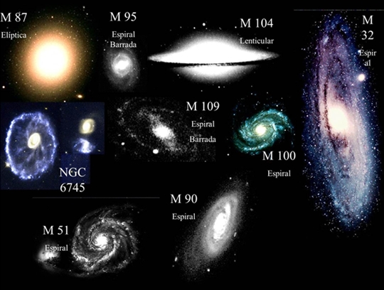 Aqui está o enxame da virgem a ampliar e distorcendo com a sua gravidade a imagem da mais distante galáxia conhecida, a 13230 Mal. Há 12000 Ma a produção de galáxias atingiu o auge, fixando-se rapidamente o número de galáxias que vemos hoje, as gigantescas nuvens do universo haviam-se concentrado nas “pequenas” galáxias. Existem hoje em dia vários tipos de galáxias, Espirais com dois ou mais braços, barradas ou não, lenticulares e elípticas, cujas diversas formas derivam de sucessivas colisões, as quais perturbam os discos galácticos e fazem as galáxias alternar entre a forma espiral, rica em gás e em estrelas jovens e azuis e a forma elíptica, com pouca quantidade de gás e com muitas estrelas velhas e amareladas. As galáxias lenticulares têm algum gás, pelo que formam estelas, mas a um ritmo muito lento.
