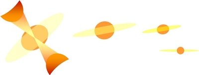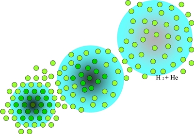 Um núcleo de gás mais denso atrai o restante gás para uma gigantesca nuvem de acreção