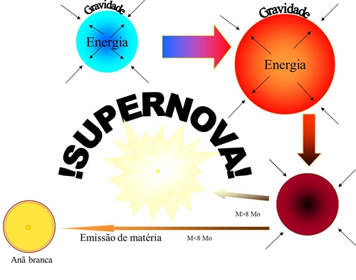 Quando a estrela deixa de libertar energia por fusão nuclear, já não pode contrapor a força da gravidade. Assim, a gravidade comprime o núcleo uma vez mais, mas agora acontece que a temperatura aumenta, mas caso os núcleos sejam demasiado pesados, pelo menos como o do ferro, a estrela começa a definhar e a ter cada vez menos actividade