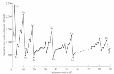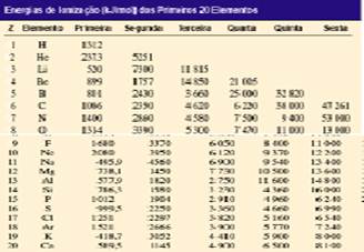 Fig. 25 – Variação das Energias de Ionização para os 20 primeiros Elementos