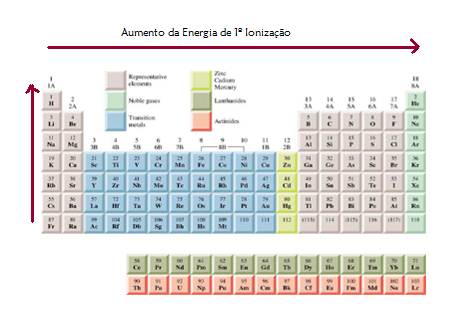 Fig. 26 – Variação da 1º Energia de Ionização ao longo do grupo e do período