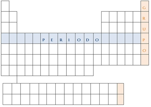 Fig. 13 – Tabela Periódica com os períodos e grupos Períodos Nestas linhas observamos a classificação periódica crescente (da esquerda para a direita e de cima para baixo) dos elementos químicos em função dos seus números atómicos. Os elementos de um mesmo período têm o mesmo número de camadas electrónicas, que corresponde ao número do período. Os elementos conhecidos até ao cobre tem sete períodos, denominados conforme a sequência de letras K-Q, ou também de acordo com o número quântico principal- n. Os períodos são: . (1ª) Camada K - n = 1s . (2ª) Camada L - n = 2s . (3ª) Camada M - n = 3s . (4ª) Camada N - n = 4s . (5ª) Camada O - n = 5s . (6ª) Camada P - n = 6s . (7ª) Camada Q - n = 7s Grupos ou famílias Classificação nas linhas verticais dos elementos químicos. As colunas representam elementos químicos de propriedades semelhantes Existem 18 grupos sendo que o elemento químico hidrogénio é o único que não se enquadra em nenhuma família e está localizado naquela posição apenas por ter número atómico igual a 1, isto é, como tem apenas um electrão na última camada, foi colocado no Grupo 1, mesmo sem ser um metal. Os elementos de cada grupo tem uma configuração electrónica semelhante e possuem igual numero de electrões de valência, e são responsáveis pela semelhança de propriedades químicas que esses elementos apresentam. Os elementos do mesmo grupo formam uma família. Grupo 1 – Família dos metais alcalinos -(apresentam todos um electrão de valência – ns1) -Li (Lítio), Na (Sódio), K (Potássio), Rb (Rubídio), Cs (Césio), Fr (Frâncio) Grupo 2 – Família dos metais alcalinos-terrosos (os elementos tem dois electrões de valêncians2)- Be (Berílio), Mg (Magnésio),Ca (Cálcio), Sr (Estrôncio), Ba (Bário), Ra (Rádio) Grupo 17 – Família dos halogéneos (apresentam todos sete electrões de valência - ns2np5) - F (Flúor), Cl (Cloro), Br (Bromo), I (Iodo), At (Astato) Grupo 18 – Família dos gases nobres (apresentam todos oito electrões de valência - ns2np6 excepto o hélio.) - He (Hélio), Ne (Neônio), Ar (Argônio), Kr (Criptônio), Xe (Xenônio), Rn (Radônio)