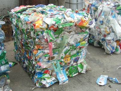 Figura 8 – Fardos para reciclagem Foram estabelecidas a nível europeu metas a alcançar pelos Estados membros de maneira a aumentar a percentagem de resíduos de embalagens reciclados. Pelo que desde meados de 2006 que a taxa de reciclagem de resíduos de embalagens é superior à meta estabelecida pela União Europeia (mínimo de 55%).