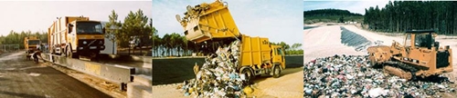 Esquema 7 – Funcionamento de uma central de incineração 4. Aterros Sanitários – O aterro sanitário é um processo complementar aos processos descritos anteriormente, sendo imprescindível a toda a estrutura de tratamento dos resíduos sólidos. Estes devem ser construídos em locais com características geológicas adequadas e são revestidos com materiais impermeáveis (como argila ou plástico) que previnem a infiltração de substâncias lixiviadas, que são posteriormente enviadas para uma estação de tratamento. Quanto maior for a taxa de valorização conseguidas nas fases anteriores, menores serão as quantidades a aterrar, prolongando-se a vida útil do aterro sanitário (AS) e diminuindo-se o custo de exploração. Com uma deposição mínima no aterro de 200 toneladas por dia de resíduos torna-se rentável o aproveitamento energético (biogás). Quando o AS recebe os restos das outras formas de valorização de resíduos é um aterro de rejeitos, sem produção de biogás e sem emissão de lixiviados poluentes. Os resíduos a depositar em aterro são numa primeira fase registados, depois são descarregados numa zona própria para a descarga, onde são espalhados pela máquina pá de rastos, em pequenas camadas e compactados. Onde se formam estratos de resíduos com 1,5 metros de altura (ideal) compactados em toda a sua extensão a largura da célula definida para o dia.