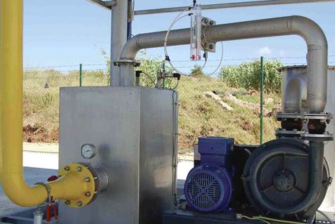Figura 15 – Ecoparque de Trajouce Advém deste tipo de tratamento a valorização energética do biogás que consiste na transformação dos gases produzidos no aterro em energia elétrica, que depois será incluída na rede (Rede Elétrica Nacional – REN) podendo assim tornar-se a central que o valoriza numa central autossuficiente (em termos energéticos). Uma das razões fundamentais para esta recuperação do Biogás é o aspeto ambiental, relativamente à redução do efeito de estufa. O metano, um dos componentes do biogás, tem um peso significativo na contribuição para o efeito de estufa, que afeta a temperatura à superfície da terra. Este aproveitamento do biogás para fins energéticos contribui para a melhoria da qualidade ambiental do aterro e das zonas envolventes, uma vez que os componentes que causam odores desagradáveis são extraídos e destruídos durante o processo de combustão.