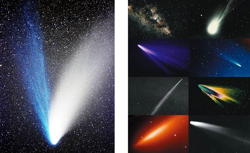 Um cometa é formado por uma parte sólida, o núcleo que é constituído por partículas de silicatos e por uma mistura de gases congelados. Quando o núcleo se aproxima do Sol, a radiação solar faz sublimar o gelo da superfície do núcleo e libertam-se gases que formam uma aura, a cabeleira à volta do núcleo. Forma-se ainda a cauda, que se dirige em sentido contrário à posição do Sol e que é constituída pelos gases e pelas poeiras libertadas do núcleo.