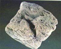 Pedra-pomes - Rocha magmática vulcânica de cor clara, com aspecto esponjoso, muito porosa e de baixa densidade, formada durante as erupções vulcânicas. Tem uma densidade inferior à da água pelo que flutua.