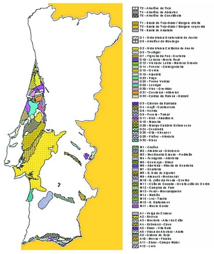 Fig. 1 – Distribuição dos principais aquíferos em Portugal Continental. 2. RESERVATÓRIOS DE ÁGUA SUBTERRÂNEA - AQUÍFEROS As águas superficiais, provenientes essencialmente da pluviosidade, começam a infiltrar-se no solo por acção da gravidade e atingem a zona de saturação das formações geológicas subjacentes, onde se movimenta e onde pode ser armazenada, indo fazer parte das águas subterrâneas. Denomina-se aquífero, uma formação geológica que permite a circulação e o armazenamento de água nos seus espaços vazios, possibilitando geralmente o aproveitamento desse líquido pelo ser humano de forma economicamente rentável e sem impactes ambientais perigosos.