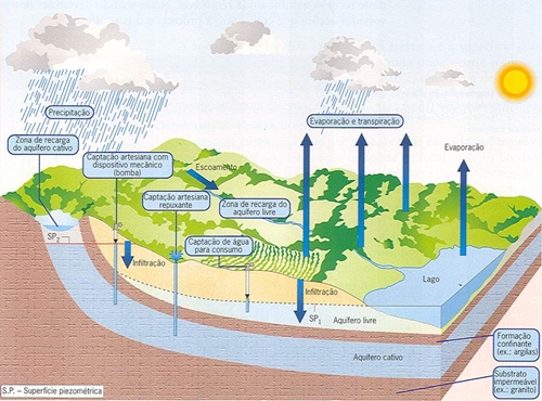 Fig. 2 – Representação esquemática de um aquífero. 3. TIPOS DE AQUÍFEROS