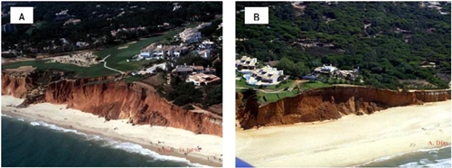 Figura 5: Alimentação da praia de Vale do Lobo. Legenda: A) Antes (24 Julho 1998); B) Depois (12 Agosto 1999).