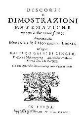 Fig.12 - Dialogo sopre i due massimi sistemi del mondo Discorsi e dimostrazioni matematiche intorno duo nuove scienze (fig.13) - Discorsi e dimostrazioni matematiche intorno duo nuove scienze, (Discursos e demonstrações matemáticas acerca de duas ciências novas), refere-se à engenharia da resistência dos materiais e à matemática da cinemática, e foi a obra final de Galileu. Nesta obra Galileu faz uma análise profunda dos fenómenos da flutuação dos corpos e enuncia os princípios científicos da acústica, dando aos músicos a base matemática dos tons e das harmonias e aos engenheiros os seus conhecimentos sobre tensões e resistências de materiais.