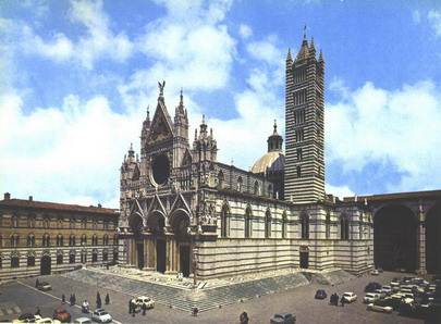 Catedral de Siena (Itália) A Arte Gótica em Portugal A Arte Gótica em Portugal desenvolveu-se mais tarde que noutros países em consequência da guerra e da escassez de recursos de que o país dispunha na altura para investir numa arte cara e sofisticada. Alguns monumentos