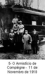 francês, pa A 11 de Novembro de 1918, como uma primeira tentativa de encerrar as hostilidades no ocidental da Primeira Guerra Mundial, assinou-se o Armistício de Compiègne – um tratado cujos principais signatários foram o marechal Ferdinand Foch, e Matthias Erzberger, representante alemão - num comboio na floresta de Compiègne, no Norte de França. O Tratado de Versalhes foi uma continuação do Armistício de Compiègne. O Tratado de Versalhes