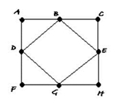 Neste grafo, os pontos B, C, G e H têm grau ímpar. Normalmente inicia-se num vértice ao acaso, e saltando sucessivamente para o seguinte acrescenta-se uma aresta quando se encontra um vértice de grau ímpar, até que todos os vértices tenham grau par. Aqui, a maneira mais eficaz de eulerizar o grafo é interligar os vértices de grau ímpar, e uma vez que são quatro, acrescentamos apenas duas arestas: B à C e H à G