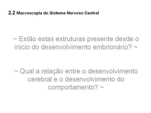 Macroscopia do Sistema Nervoso Autores: Alexandra Faria, André Mendonça, Cátia Medeiros, Sofia Gomes e Vânia Resende Escola: [Escola não identificada] Data de Publicação: 01/03/2008 Resumo do Trabalho: Trabalho sobre as origens do cérebro e do comportamento, realizado no âmbito da disciplina de Psicologia (12º ano). Ver Trabalho Completo Comentar este trabalho / Ler outros comentários Se tens trabalhos com boas classificações, envia-nos, de preferência em word para notapositiva@sapo.pt pois só assim o nosso site poderá crescer.