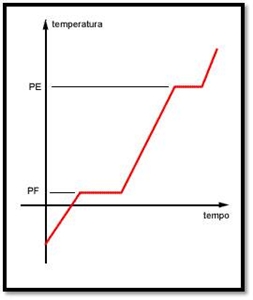 Na figura ao lado, é observável a relação de temperatura e tempo dos pontos de ebulição (PE) e dos pontos de fusão (PF).