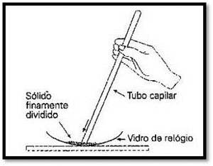 Na técnica tradicional para determinar o ponto de ebulição, é usado um termómetro, no qual se prende o capilar (com o Naftaleno). Esse termómetro é mergulhado em água. Na determinação do ponto de fusão do Naftaleno, teremos que introduzir num capilar o Naftaleno em pó. Isto deve ser feito do seguinte modo: