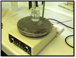 Naftaleno em pó. 3. Juntar o tubo capilar ao termómetro, usando um elástico. 4. Colocar o tubo capilar e o termómetro num suporte universal. 5. Emediatamente abaixo do termómetro, colocar um gobelé com água da torneira (que deve estar em cima de uma placa de aquecimento ligada). 6. Aquecer rapidamente a água e anotar a temperatura observada (o naftaleno tem que passar de um tom branco para transparente). 7. Aquecer novamente o gobelé, mas desta vez, abruptamente até menos 20ºC que a temperatura observada primeiramente. Em seguida, reduzir a temperatura da placa de aquecimento e anotar o novo valor observado. 8. Determinámos o valor médio das temperaturas observadas. Esquema de Montagem