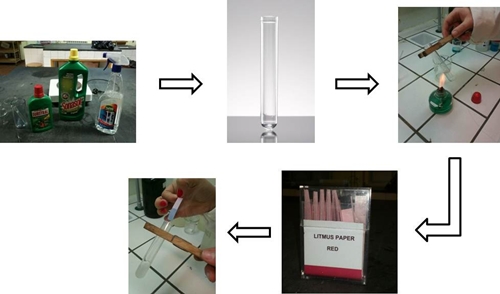 Experiência . Solução aquosa de hidróxido de sódio (NaOH); . Solução aquosa de amoníaco (NH3); . Solução aquosa de ácido clorídrico concentrado (HCl); . Solução aquosa diluída de sulfato de cobre II (CuSO4); . Reagente de Nessler; . Papel de litmus vermelho; . Sonasol; . Ajax dos vidros e chão; . Substral. 2.ª Experiência . Água destilada; . Álcool etílico a 96%; . Solução de amoníaco a 25% (m/m) . Sulfato de cobre (II) penta-hidratado.