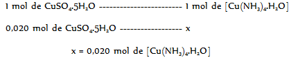 Quantidade química de [Cu(NH3)4.H2O]prevista Pela estequiometria da reação: