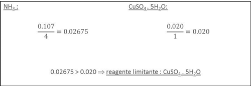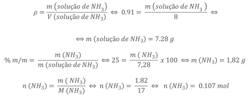 Cálculo do reagente limitante: V (NH3)= 8mL = 0.008L = 8 cm3 r (solução de NH3) = 0.91 g/ cm3