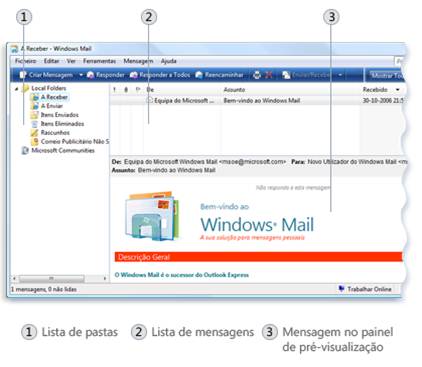 Clique na pasta A Receber para ver as mensagens de correio eletrónico