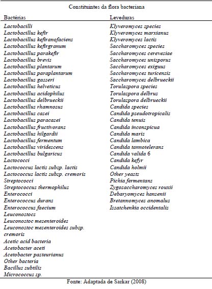 Processo da produção industrial de Kéfir [2] Os microrganismos de maior relevo a ter em conta em termos de contaminação alimentar, de uma forma geral, são a Salmonella spp., Staphylococcus aureus, Clostridium perfringens, Escherichia coli, Vibrio parahemolyticus, Bacilus cereus, Clostridium botolinum, Campylobacter jejuni, Yersinia enterocolítica [3] e algumas delas estão associadas a este alimento. A primeira exige principais preocupações, neste caso específico. O complexo de grãos de Kefir não possuem tendencialmente microrganismos tóxicos, todavia o leite é um dos componentes em que se deve prestar mais atenção pela potencial presença de salmonelas, Cólera, infecções por Escherichia coli, Salmonelose, Shigelose, Castrentrite causada por S. aureus, Tuberculose, Listeria monocytogenes (crescimento em temperaturas entre 2,5 a 42ºC, recontaminação após pasteurização é frequente e legislação europeia admite presença até 100 UFC/g de alimento) [4] e fungos como o Fusarium e Penicillium que podem produzir toxinas. A pasteurização do leite é a única forma de eliminar definitivamente a presença, da maior parte, destes organismos contaminantes. A intoxicação alimentar está, portanto, associada ao consumo de leite cru ou de leite pasteurizado contaminado. Uma das principais preocupações deve-se abater sobre as instalações de armazenamento, ao nível da higiene e do ambiente fresco do produto mas também do local da colheita do leite. Do ponto de vista legal, apesar da crescente comercialização do Kefir, este não tem uma legislação padronizada, dada a dificuldade em estabelecer critérios de qualidade para o produto, ainda para mais tendo em conta a versatilidade do produto [1] mas o leite é componente fortemente legislado. Bibliografia · [1] Simone Weschenfelder (Fevereiro 2009). Caracterização de kefir tradicional quanto á composição físico-química, sensorialidade e atividade anti-Escherichia coli. Porto Alegre. p.19-23. · [2] Semih e Cagindi. Kefir: A Probiotic Dairy-Composition, Nutritional and Therapeutic Aspects Pakistan Journal of Nutrition 2 (2): 54-59, 2003 · [3] Simone Weschenfelder (Fevereiro 2009). Caracterização de kefir tradicional quanto á composição físico-química, sensorialidade e atividade anti-Escherichia coli. Porto Alegre. p.28. · [4] Santos, Marcos e Fonseca, Luís. Microrganismos patogénicos e qualidade do leite. Faculdade de Medicina Veterinária e Zootecnia da Universidade de São Paulo (FMVZ/USP).