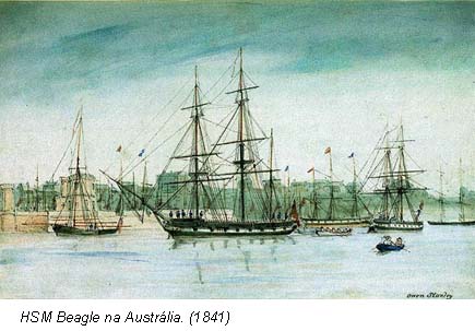 Índice Vida: . Infância e educação; . Viagem no Beagle; . Ascendência na Sociedade e família; . Últimos anos de vida; Darwinismo: . Fundamentos; . Teoria da selecção natural; . Publicação e Reacção à Teoria; Publicações (Lista); Cronologia de Vida; Curiosidades; Vida Infância e Educação Charles Robert Darwin nasce Shrewsbury, Shropshire, Inglaterra, no dia 12 de Fevereiro de 1809. Filho do medico Robert Darwin e de Susannah Darwin. O seu avô paterno foi Erasmus Darwin e o seu avô materno, o famoso ceramista Josiah Wedgwood, ambos pertencentes à elite intelectual da época. A sua mãe morre quando tinha apenas oito anos. No ano seguinte, é enviado para a escola Shrewsbury. Ali, ele só se interessava em coleccionar minerais, insectos e ovos de pássaros. Em 1825 foi estudar medicina na Universidade de Edimburgo. Contudo, sua aversão à brutalidade da cirurgia da época levou-o a negligenciar os seus estudos médicos. Já em 1827, o seu pai, decepcionado com a falta de interesse pela medicina, matriculou-o num curso de Bacharelado em Artes na Universidade de Cambridge para que ele se tornasse um clérigo. Contudo Darwin preferia cavalgar e caçar a estudar. Darwin ingressou no curso de história natural de Henslow e tornou-se um dos alunos favoritos. Nas suas provas finais em Janeiro de 1831, ele saiu se muito bem e foi o décimo colocado entre 178 aprovados. John Stevens Henslow, professor de Botânica e tutor de Darwin na Universidade, recomendou Darwin para acompanhar o capitão do barco HMS Beagle, numa viagem de 2 anos para cartografar a América do Sul e era uma oportunidade que Darwin não podia deixar escapar, pois assim poderia desenvolver a sua carreira como naturalista. Viagem no Beagle HMS Beagle era um navio da Armada Inglesa que deu a volta ao mundo com Charles Darwin abordo. A viagem do Beagle durou quatro anos e nove meses, dois terços dos quais Darwin esteve em terra firme. Ele estudou uma rica variedade de características geológicas, fósseis, organismos vivos e conheceu muitas pessoas, entre nativos e colonos. Darwin documentou metodicamente um enorme número de espécimes, muitos dos quais novos para a ciência. Isto estabeleceu a sua reputação como um naturalista e fez dele um dos precursores do campo da Ecologia. Durante a viagem, Darwin leu o livro "Princípios da Geologia" de Charles Lyell, que descrevia características geológicas como o resultado de processos graduais ocorrendo ao longo de grandes períodos de tempo. Ele escreveu para casa a dizer que via formações naturais como se através dos olhos de Lyell: degraus planos de pedras com o aspecto característico de erosão por água e conchas na Patagónia, eram sinais claros de que praias se haviam elevado; no Chile, ele presenciou um terramoto e observou pilhas de mexilhões encalhados acima da maré-alta o que mostrava que toda a área havia sido elevada; e mesmo no alto dos Andes ele foi capaz de encontrar conchas. Na América do Sul, ele descobriu fósseis de animais extintos como o megaterium e o gliptodonte em camadas que não mostravam quaisquer sinais de catástrofe ou mudanças climáticas. Naquele tempo, ele pensava que aquelas eram espécies similares às encontradas em África mas, após o seu regresso, Richard Owen mostrou-lhe que os fósseis encontrados eram mais similares a animais não extintos que viviam na mesma região (preguiças e tatus). Nas ilhas Galápagos, Darwin descobriu que cada espécie de cotovia era diferente de uma ilha para outra. Ao voltar para Inglaterra, foi lhe mostrado que o mesmo ocorria com as tartarugas e os tentilhões. O rato-canguru e o ornitorrinco, encontrados na Austrália, eram animais tão estranhos que levaram Darwin a pensar que "Um incrédulo... poderia dizer que seguramente dois criadores diferentes estiveram em acção”". Todas estas observações deixaram-no muito intrigado e, na primeira edição de "A Viagem do Beagle", ele explicou a distribuição das espécies à luz da teoria de Charles Lyell de "centros de criação". Em edições posteriores, ele já dava indicações de como via a fauna encontrada nas Ilhas Galápagos como evidência para a evolução: "é possível imaginar que algumas espécies de aves neste arquipélago derivam de um número pequeno de espécies de aves encontradas originalmente e que se modificaram para diferentes finalidades". Abordo do Beagle Darwin deu a volta ao mundo, esteve em países ou locais como: Cabo Verde, Brasil, Argentina, Andes, Terra do Fogo, Chile, Peru, Ilhas Galápagos, Nova Zelândia, Austrália, Ilhas Cocos. Ascendência na Sociedade e Família Enquanto Darwin ainda estava em viagem, Henslow cuidadosamente cultivou a reputação de seu antigo pupilo fornecendo a vários naturalistas os espécimes fósseis e cópias impressas das descrições geológicas que Darwin fazia. Quando o Beagle regressou em 2 de Outubro de 1836, Darwin era uma celebridade no meio científico. Ele visitou a sua casa em Shrewsbury e descobriu que seu pai havia feito vários investimentos para que Darwin pudesse ter uma vida tranquila. Mais que isto, ele poderia ter uma carreira científica auto financiada. Darwin foi então a Cambridge e convenceu Henslow a fazer descrições botânicas das plantas que ele tinha encontrado. Depois dirigiu-se a Londres onde procurou os melhores naturalistas para descrever as suas outras colecções de forma a poder publicá-las. O entusiasta Charles Lyell encontrou Darwin em 29 de Outubro e apresentou-o ao jovem e promissor anatomista Richard Owen, depois de trabalhar na colecção de ossos fossilizados de Darwin no Royal College of Surgeons, Owen surpreendeu todos ao revelar que alguns dos ossos eram de tatus e preguiças gigantes extintas. Isto melhorou a reputação de Darwin. Com a ajuda entusiasmada de Lyell, Darwin apresentou seu primeiro artigo no Geological Society de Londres a 4 de Janeiro de 1837, afirmando que a massa terrestre da América do Sul se estava 