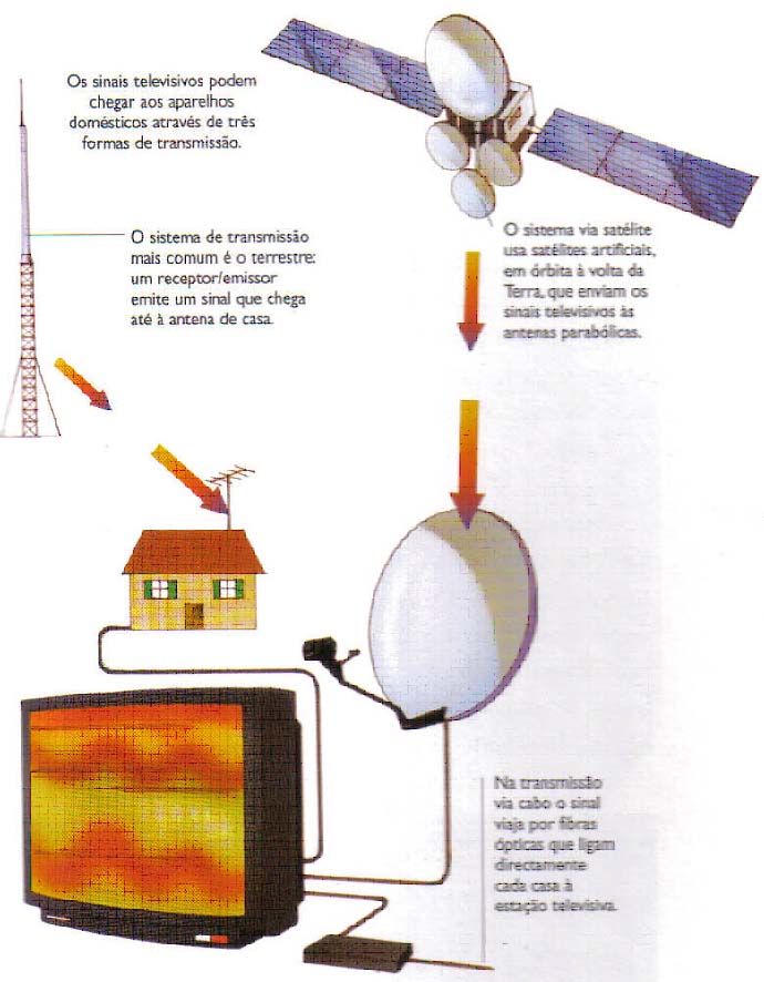 Em 1936, Londres utiliza imagens com definição de 405 linhas e inaugura-se a estação regular da BBC. No ano seguinte, três câmaras electrónicas transmitem a cerimónia da Coroação de Jorge VI, com cerca de cinquenta mil telespectadores. Na Rússia, a televisão começa a funcionar em 1938 e nos Estudos Unidos, em 1939. Durante a Segunda Guerra Mundial, a Alemanha foi o único país europeu que a manter a televisão no ar. Paris voltou com as transmissões em Outubro de 1944, Moscou em Dezembro de 1945 e a BBC em Junho de 1946, com a transmissão do desfile da vitória. Em 1950, a França possuía uma emissora com definição de 819 linhas, a Inglaterra com 405 linhas, os russos com 625 linhas e Estados Unidos e Japão com 525 linhas. Em Setembro desse mesmo ano, inaugura-se a TV Tupi de São Paulo, pertencente ao jornalista Assis Chateaubriand, dono dos Diários Associados, com sistema baseado no americano. Em resumo pode-se dizer que a câmara de TV capta as imagens, decompondo-as em sinais eléctricos que são mandados para um centro electrónico, o modelador (aparelho que modula as ondas em um oscilador). Os sinais são enviados em forma de ondas por uma grande antena transmissora que é encaminhada ao aparelho receptor que desfaz os sinais, recompondo-os na sua posição original, reproduzindo na tela a imagem transmitida. A formação da imagem é instantânea. O dispositivo electrónico utiliza-se de pontinhos, ao invés de linhas, conseguindo desenhar o frame (imagem) inteiro a cada 1/25 de segundo. Para transmitir a imagem de um lugar para o outro utilizou-se antenas, mas como mas como as ondas são em linha recta ficou difícil transmitir para o outro lado do globo terrestre, devido à curvatura, procurando deste modo uma solução espacial. Em 23 de Julho de 1962, a primeira transmissão via satélite, o satélite artificial Telstar, lançado pela NASA dos E.U.A. O progresso da engenharia espacial e das telecomunicações permitiu lançar satélites em órbita à volta da Terra. São eles que garantem as transmissões televisivas e as comunicações telefónicas intercontinentais que permitem comunicar um mesmo sinal em todo o mundo ao mesmo tempo.