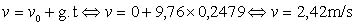 D) Cálculo da velocidade imediatamente antes de atingir o solo