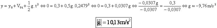 Conclusão A aceleração da gravidade de um corpo em queda livre, próximo da superfície da Terra, não depende da massa do corpo, pois, a partir dos cálculos efectuados em B) e C) foi possível verificar que o resultado obtido experimentalmente para o valor de g em corpos de massas diferentes (m1 e m2) é muito próximo do valor tabelado (g=10,13 m/s2 para m1; g=9,64 m/s2 para m2).