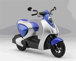 Honda Electric Moped Prototype Um protótipo de moped eléctrico amigo do ambiente, concebido para utilização citadina e nas deslocações casa-trabalho-casa. Dando mais um passo na produção de uma moto eléctrica para o público em geral, este protótipo pode, eventualmente, dar origem a um veículo de produção em massa. O Moped-EV é compacto e leve. A sua bateria de níquel-hidrogénio, localizada no interior do quadro de alumínio, é extremamente leve, dissipa o calor de forma eficiente e com 360 watt/hora, oferece uma duração excepcionalmente longa. Suficientemente potente para subir uma estrada com doze graus de inclinação, este moped eléctrico oferece performances comparáveis às das motos da mesma classe com motor de combustão interna. Ao contrário da maioria das outras motos que possuem o acelerador no punho, o Moped-EV apresenta uma alavanca de aceleração com duas fases, localizada debaixo do punho direito. Accionada de forma fácil pelo polegar, a alavanca de aceleração ajuda a tornar fácil a condução, mesmo para os condutores menos experientes. Há bastante tempo que a Honda realiza investigação para desenvolver a próxima geração de fontes de energia que reduzam as emissões nocivas e ajudem a abrandar o aquecimento global. Em 1994, a Honda desenvolveu a CUV ES, uma scooter eléctrica utilizada por instituições governamentais. Seguindo o trilho daquele veículo revolucionário, o Moped-EV foi concebido para oferecer um meio de transporte silencioso e limpo para as deslocações casa-trabalho-casa e de lazer.