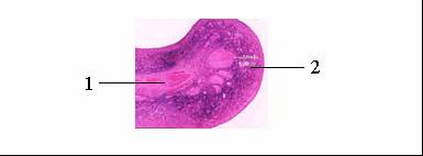 20. Órgão representado: ovário. 1-zona medular ou medula. 2-zona cortical ou córtex.