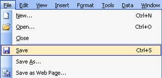 Poderá, alternativamente, ser escolhida a opção “Save” no menu “File”. No caso de ser a primeira vez que se está a efectuar a gravação do documento, a opção “Save” é activada como a opção “Save As”.