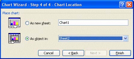 O quarto e último passo do assistente serve apenas para definir a localização do gráfico, a qual poderá ser uma das folhas de cálculo existentes no documento (opção “As object in:”) ou uma nova folha do documento específica para o gráfico (opção “As new sheet:”).